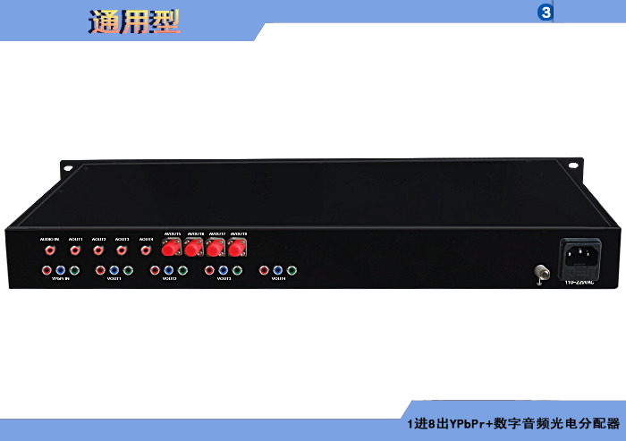 配置 1進8出YPbPr數字音頻光電分配器,AES/EBU(卡儂/BNC)、S/PDIF(RCA)、光纖數字音頻接口,獨立/冗余供電,機架,通用型