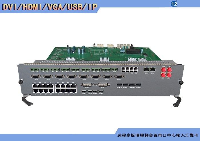 遠程高標清視頻會議電口中心接入匯聚卡,1/2/4/8路DVI/HDMI/DP/VGA/YPbPr/3G/HD-SDI攝像機電口輸出,1/2/4/8路DVI/HDMI/DP/VGA/YPbPr/3G/HD-SDI顯示屏電口輸入,1/2/4/8路模擬/數字雙向立體聲音頻可選,1/2/4/8路可選數據,多路電話或百兆/千兆以太網可選,單模/多模,獨立/冗余供電,1/2/3/4U機架,非網管/網管/帶光纖數字診斷網管 |