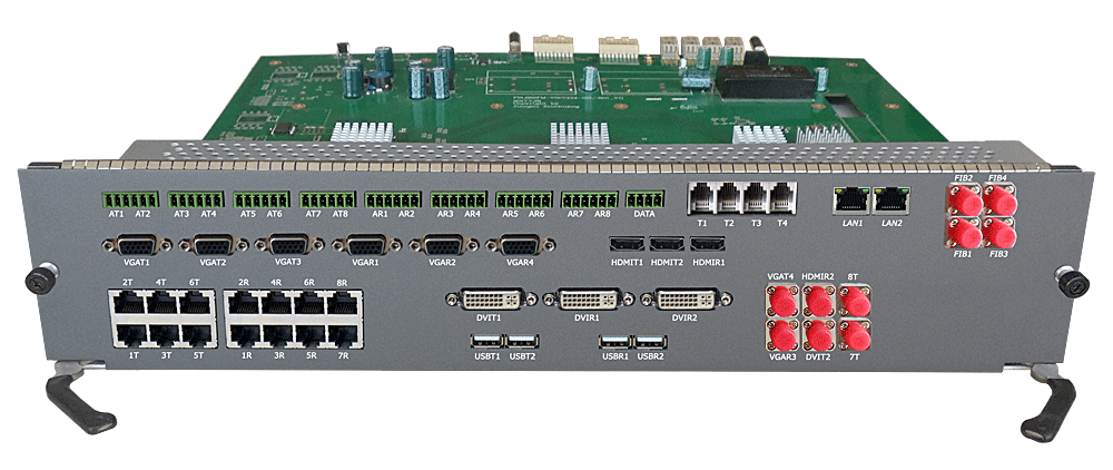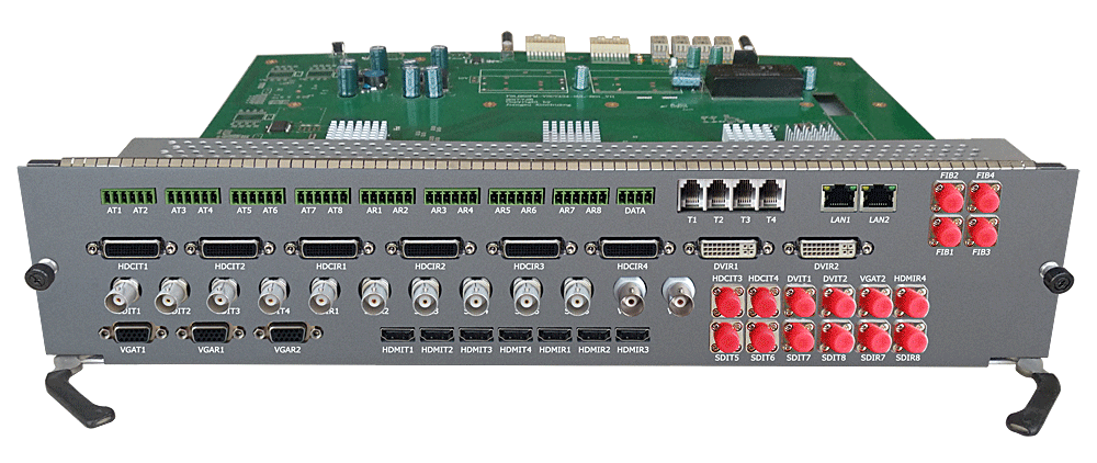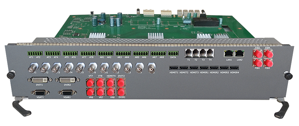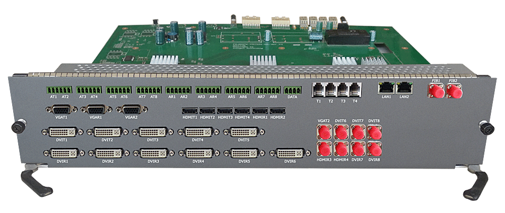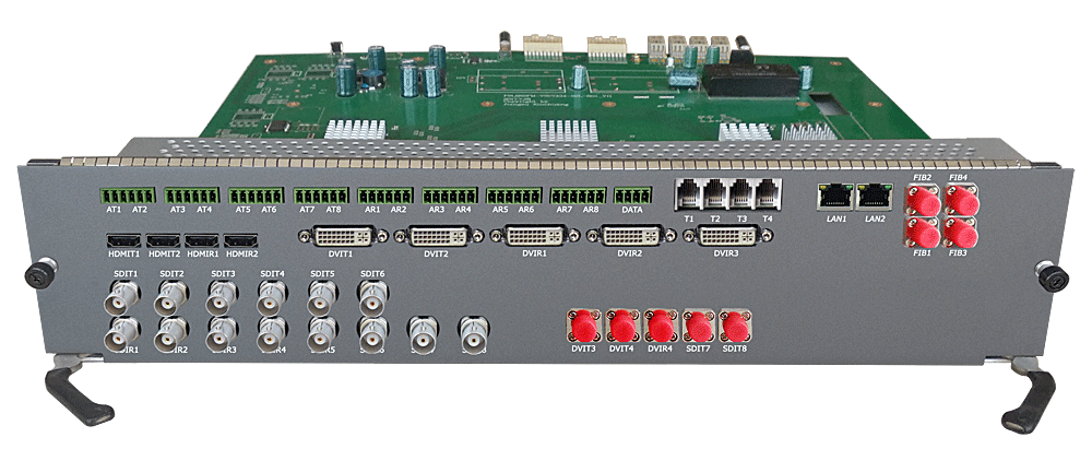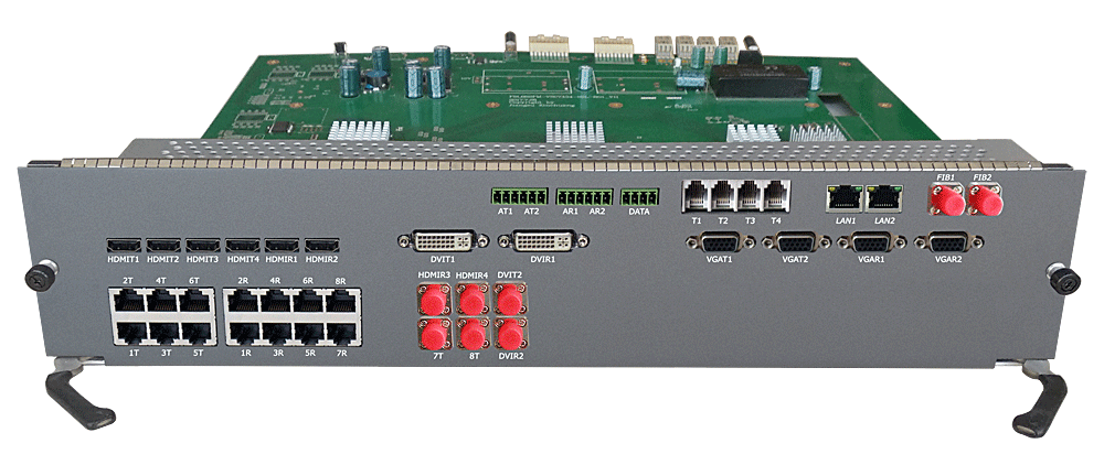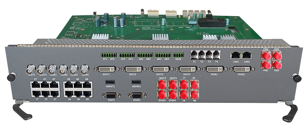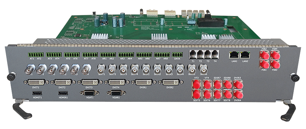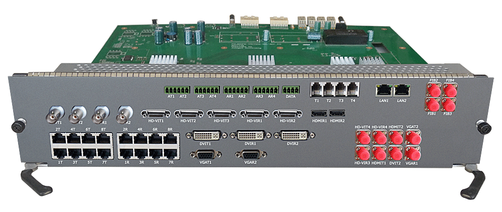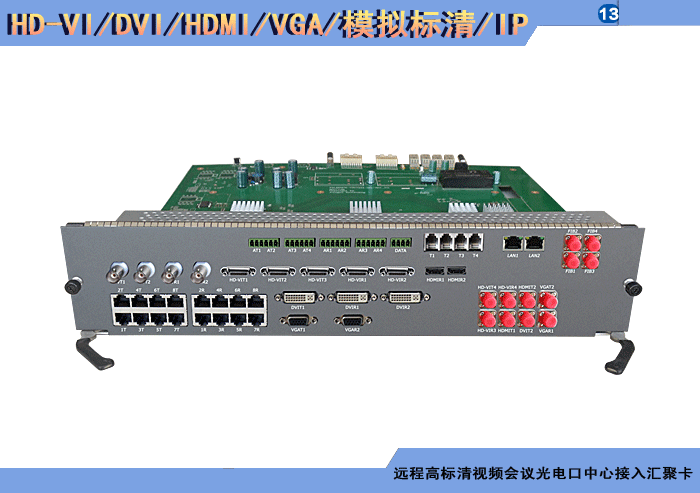 HD-VI/DVI/HDMI/DP/VGA/YPbPr/模擬標清視頻/IP網絡攝像機+DVI/HDMI/DP/VGA/YPbPr/模擬標清視頻/IP網絡顯示屏系列光電口中心接入匯聚卡 |