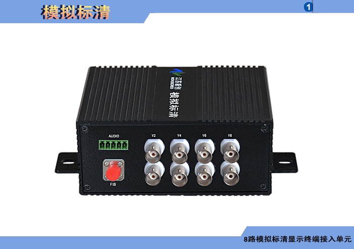 8路模擬標清視頻顯示接入接收單元,模擬/數字音頻可選,單模/多模,1/2纖,ST/FC/SC/LC/SFP光接口,壁掛,通用型,非網管/網管/帶光纖數字診斷網管 |