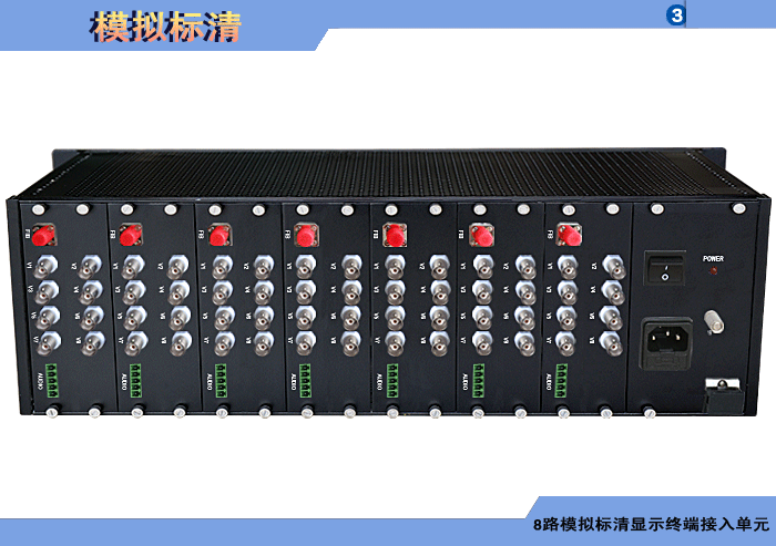 8路模擬標清視頻顯示接入發射單元,模擬/數字音頻可選,單模/多模,1/2纖,ST/FC/SC/LC/SFP光接口,3U插卡,通用型,非網管/網管/帶光纖數字診斷網管 |