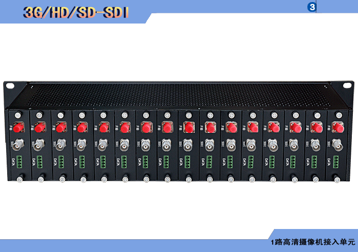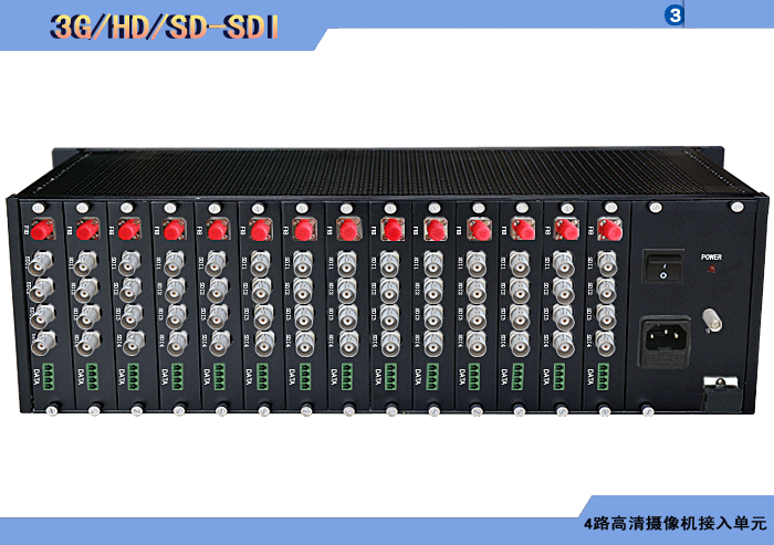 4路3G/HD/SD-SDI高清攝像機接入接收單元,RS-232/485/422控制數據可選,單模/多模,1/2纖,ST/FC/SC/LC/SFP光接口,3U插卡,通用型,非網管/網管/帶光纖數字診斷網管 |