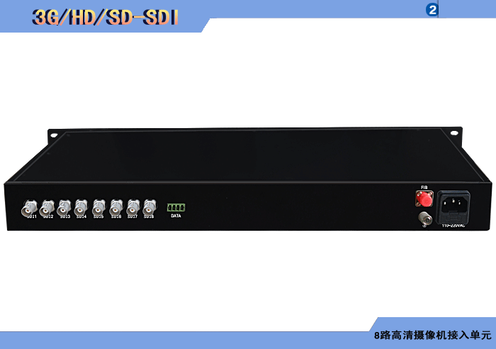 8路3G/HD/SD-SDI高清攝像機接入接收單元,RS-232/485/422控制數據可選,單模/多模,1/2纖,ST/FC/SC/LC/SFP光接口,1U機架,通用型,非網管/網管/帶光纖數字診斷網管 |