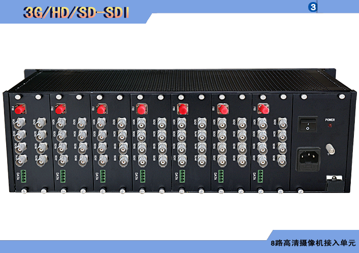 8路3G/HD/SD-SDI高清攝像機接入接收單元,RS-232/485/422控制數據可選,單模/多模,1/2纖,ST/FC/SC/LC/SFP光接口,3U插卡,通用型,非網管/網管/帶光纖數字診斷網管 |
