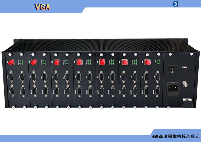 4路VGA高清攝像機接入接收單元,RS-232/485/422控制數據可選,單模/多模,1/2纖,ST/FC/SC/LC/SFP光接口,3U插卡,通用型,非網管/網管/帶光纖數字診斷網管 |