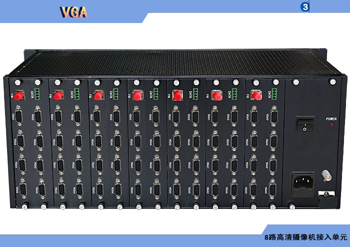 8路VGA高清攝像機接入接收單元,RS-232/485/422控制數據可選,單模/多模,1/2纖,ST/FC/SC/LC/SFP光接口,3U插卡,通用型,非網管/網管/帶光纖數字診斷網管 |