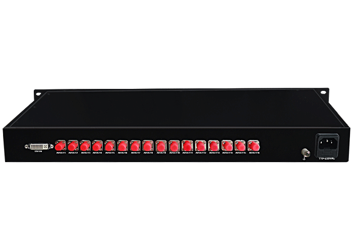 1進16出DVI光纖分配器,內置數字均衡器/抖動去除器可選,獨立/冗余供電,壁掛,通用型 |