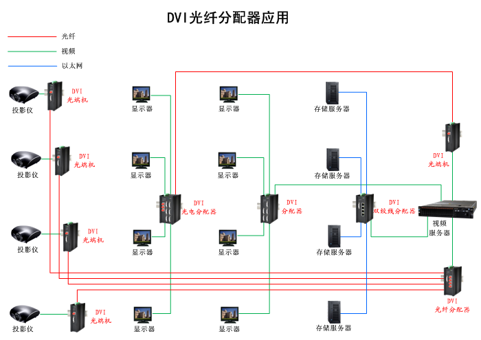 1/2/4/8/16進2/4/8/16/32出DVI光纖分配器,內置數字均衡器/抖動去除器可選,獨立/冗余供電,壁掛/機架,高可靠型 |