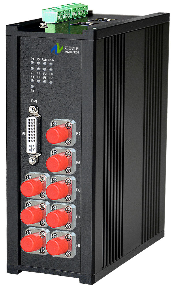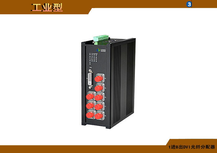 1進8出DVI光纖分配器,內置數字均衡器/抖動去除器可選,獨立/冗余/總線供電(DC18~36V/5V),導軌,工業型 |