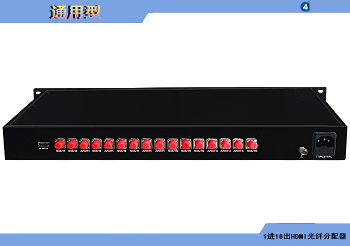 1進16出HDMI光纖分配器,內置數字均衡器/抖動去除器可選,獨立/冗余供電,機架,通用型 |