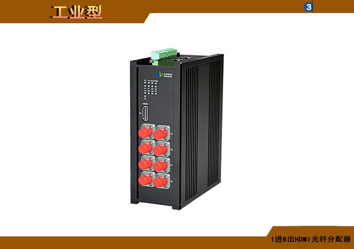 1進8出HDMI光纖分配器,內置數字均衡器/抖動去除器可選,獨立/冗余/總線供電(DC18~36V/5V),導軌,工業型 |