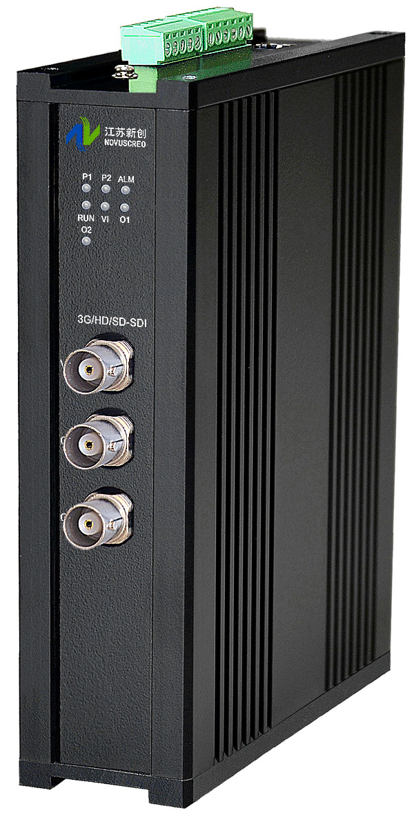 1進2出3G/HD/SD-SDI分配器,獨立/冗余/總線供電(DC18~36V/5V),導軌,工業型 |