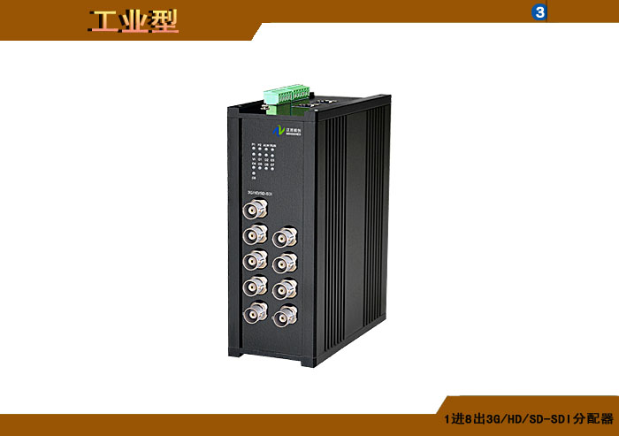 1進8出3G/HD/SD-SDI分配器,獨立/冗余/總線供電(DC18~36V/5V),導軌,工業型 |