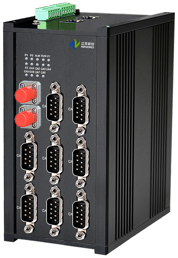 CAN總線級聯型接入單元是江蘇新創自主研發創新,專門為 各種各種發電機組、電機及伺服變頻系統、RTU、PLC/DCS、儀器儀表、測量儀器、匯流箱、逆變器、開關配電柜、氣象監測儀、環境檢測儀、變升壓系統、數據采集器、電度表、電量計量儀、保護和測控柜、繼電和配電保護裝置、各種傳感器和檢測系統、編碼器、變頻器、伺服器、執行器設備輸出的CAN信號進行調理如隔離放大、濾波和降噪、隔離、分配、光纖轉換、傳輸和供電配電而設計。采用總線級聯技術將沿光纖線路分布的各監控點的信息用1芯光纖串接在一起高質量、無失真地傳輸到中心,大大節省了用戶設備投資成本,提高了光纜利用率。采用新創光纖故障智能檢測和報警技術,光纖總線上的任何一個節點發生故障,故障點自動切除或恢復,不影響其他節點的正常通信,因此具有較高的可靠性、可維護性 。 透明符合和兼容CAN2.0A/CANB2.0B、ISO11898-2標準、ISO 11898-4 TTCAN標準,采用底層轉換技術和無延遲自動雙向切換技術,透明支持任意DeviceNET、CANopen、 CANopen-Safety等等各種上層協議,支持大5K~125K/1M/2M/5Mbps的總線工作速率。內置電纜自動均衡器和時鐘重定時功能,因此大大降低及保證了輸出波形失真和數字信號抖動的要求,提高了輸入輸出信號質量,單段電纜總線長度可達5公里(10Kbps) ,大節點數110個。支持輸入、輸出及電源三端隔離,采用的高速數字隔離技術,其傳輸速度和熱穩定性遠高于普通的光電隔離器;內置15KV靜電保護器,可有效防止設備之間由于地不平衡引起的串口損壞及靜電擊穿。內置的高性能的兩級粗細抗雷擊保護裝置,支持共模和差模兩種保護模式。高達10KA通流量的第一級粗保護電路能夠有效的降低和抑制雷電、浪涌大信號沖擊;第二級精細保護電路能夠有效去除小信號殘留電壓沖擊及干擾信號。所有保護電路都采用高可靠、低殘壓、低寄生電容及快速響應保護時間的防雷器件。