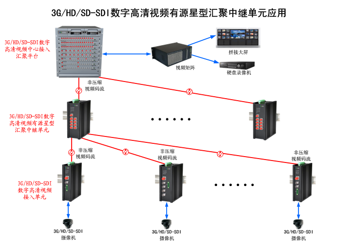 8路3G/HD/SD-SDI數字高清視頻有源星型匯聚中繼單元,2路光纖匯聚,單模/多模/塑料,獨立/冗余供電,機架,通用型 |
