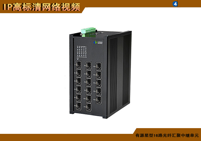 IP高標清網絡視頻有源星型匯聚中繼單元,16路光纖匯聚,100M/1G/10G光口可選,單模/多模/塑料,1/2纖,獨立/冗余供電,壁掛,通用型 |