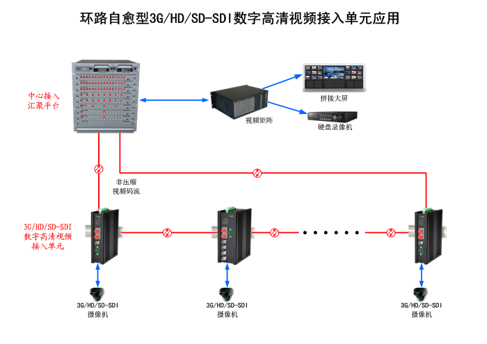 2/3/4/8/16路3G/HD/SD-SDI數字高清視頻環路自愈型接入單元,復合信號可選,單模/多模/塑料,2纖,獨立/冗余供電,壁掛,防水型,非網管/網管/帶光纖數字診斷網管 |