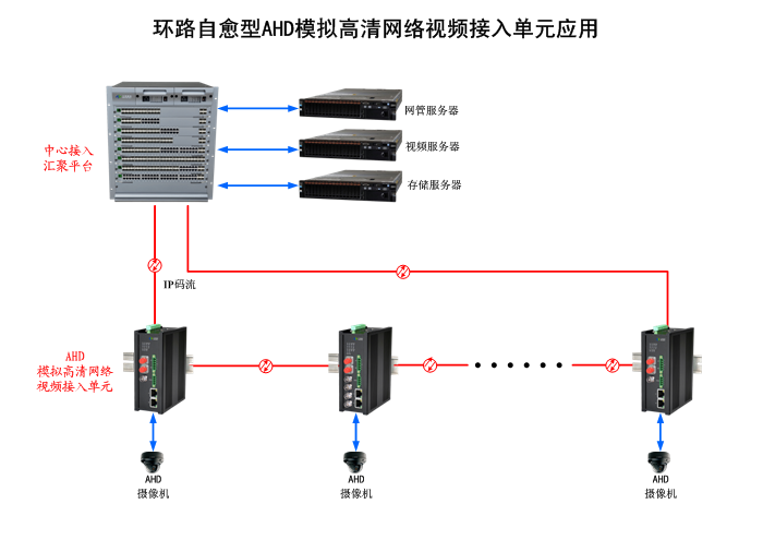 1/2/3/4路AHD模擬高清網絡視頻環網自愈型接入單元,2光2電百兆/千兆以太網接口,1路雙向音頻/報警開關量/控制數據,單模/多模/塑料,1/2纖,獨立/冗余供電,壁掛,高可靠型 |