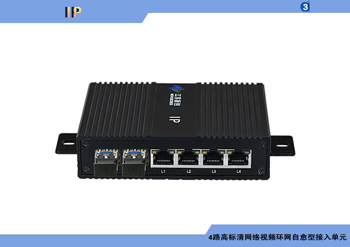 4路IP高標清網絡視頻環網自愈型接入單元,2路光纖接口,10/100/1000M電口,100M/1G/10G光口可選,單模/多模/塑料,1/2纖,獨立/冗余/總線供電(DC18~36V/5V),導軌,工業型,非網管/網管/帶光纖數字診斷網管 |