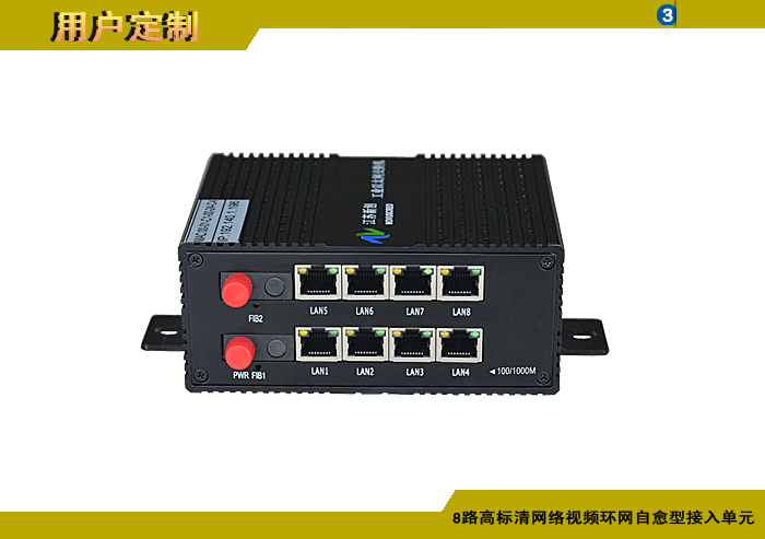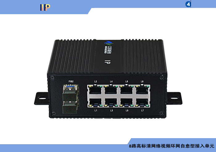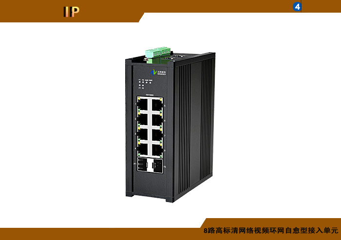8路IP高標清網絡視頻環網自愈型接入單元,2路光纖接口,10/100/1000M電口,100M/1G/10G光口可選,單模/多模/塑料,1/2纖,獨立/冗余/總線供電(DC18~36V/5V),導軌,工業型,非網管/網管/帶光纖數字診斷網管 |