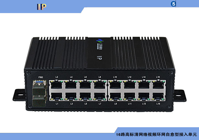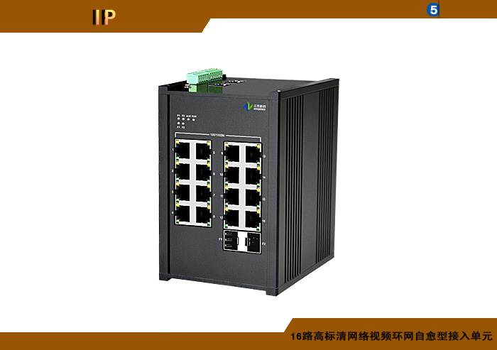 16路IP高標清網絡視頻環網自愈型接入單元,2路光纖接口,10/100/1000M電口,100M/1G/10G光口可選,單模/多模/塑料,1/2纖,獨立/冗余/總線供電(DC18~36V/5V),導軌,工業型,非網管/網管/帶光纖數字診斷網管 |