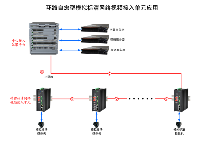 2路模擬標清網絡視頻環網自愈型接入單元,2光2電百兆/千兆以太網接口,1路雙向音頻/報警開關量/控制數據,單模/多模/塑料,1/2纖,ST/FC/SC/LC/SFP光接口,15/20/25/32dB,獨立/冗余/總線供電(DC18~36V/5V),導軌,工業型,非網管/網管/帶光纖數字診斷網管 |
