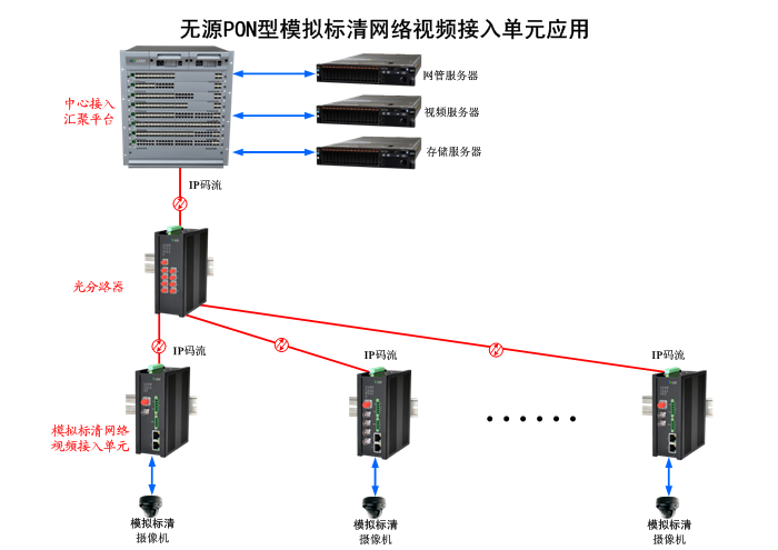 4路模擬標清網絡視頻無源PON型接入單元,1光2電百兆/千兆以太網接口,1路雙向音頻/報警開關量/控制數據,單模/多模/塑料,1/2纖,ST/FC/SC/LC/SFP光接口,15/20/25/32dB,獨立/冗余供電,壁掛,通用型 |