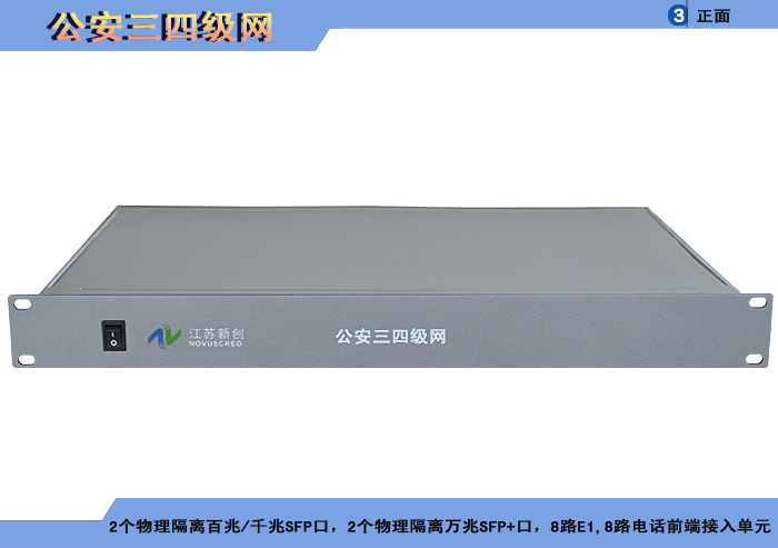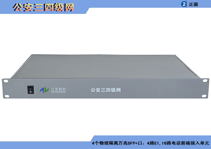 公安三四級網前端接入單元,2個物理隔離百兆/千兆SFP口,2個物理隔離萬兆SFP+共享口,8/16/32/48/64路模擬電話/程控交換機接口可選,4/8/16路E1接口可選,背板供電,19英寸1/2/3U機箱,通用型/工業型。 |