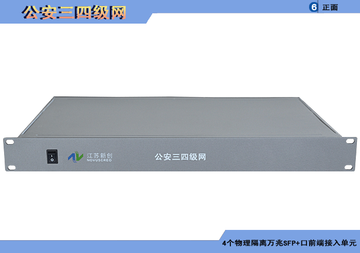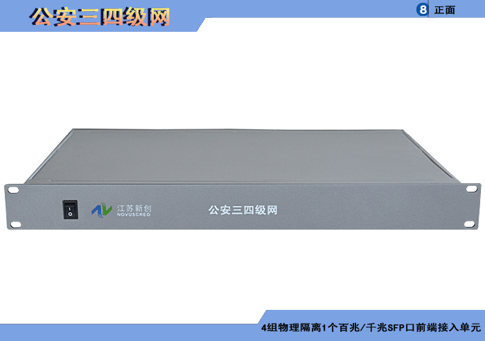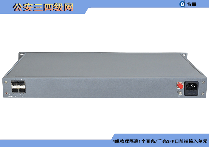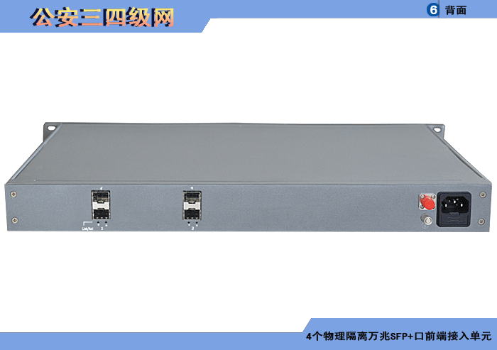 公安三四級網前端接入單元,4個物理隔離百兆/千兆SFP口,背板供電,19英寸1U機箱,通用型/工業型。 |