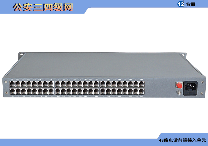 公安三四級網前端接入單元,48路模擬電話/程控交換機接口可選,背板供電,19英寸1/2/3U機箱,通用型/工業型。 |