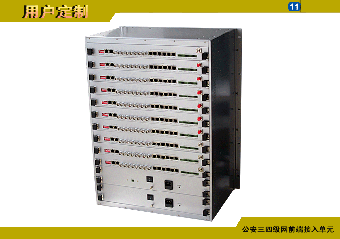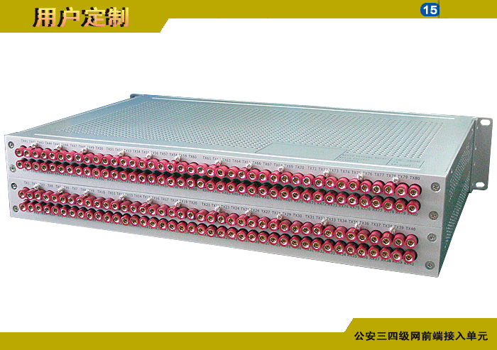 公安三四級網前端接入單元,80路E1接口可選,背板供電,19英寸1/2/3U機箱,通用型/工業型。 |