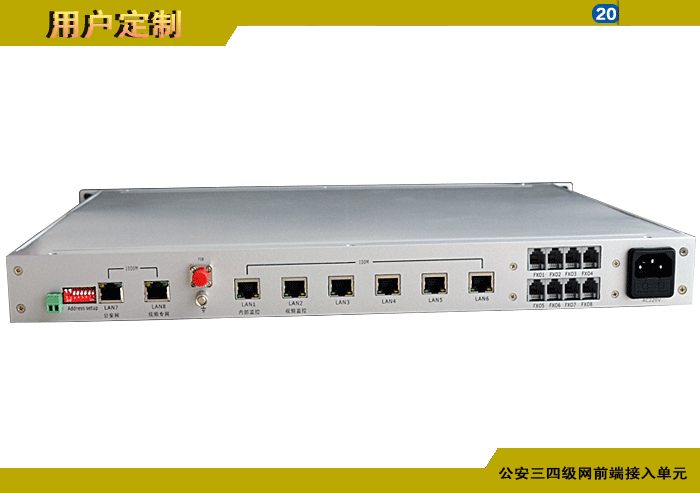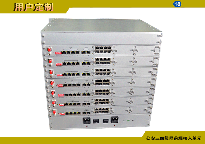 公安三四級網前端接入單元,20路E1接口可選,背板供電,19英寸1/2/3U機箱,通用型/工業型。 |
