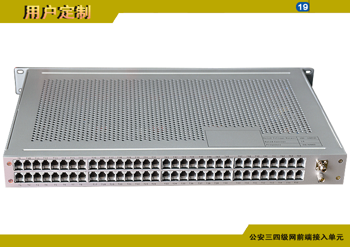 公安三四級網前端接入單元, 8/16/32/48/64路模擬電話/程控交換機接口可選,背板供電,19英寸1/2/3U機箱,通用型/工業型。 |