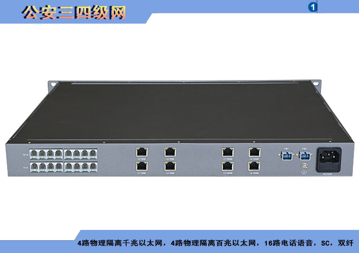 公安三四級網前端接入單元網絡接口支持4路物理隔離千兆以太網,4路物理隔離百兆以太網,電話接口支持16路電話語音。
