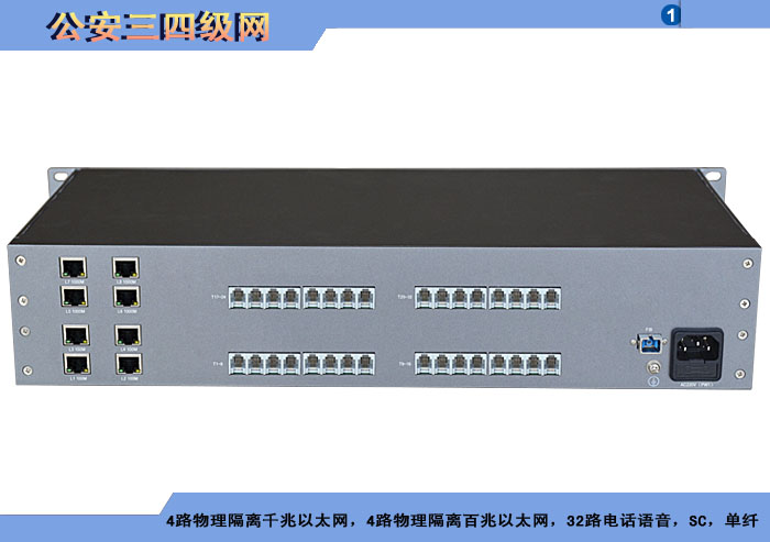 公安三四級網前端接入單元網絡接口支持4路物理隔離千兆以太網,4路物理隔離百兆以太網,電話接口支持32路電話語音。