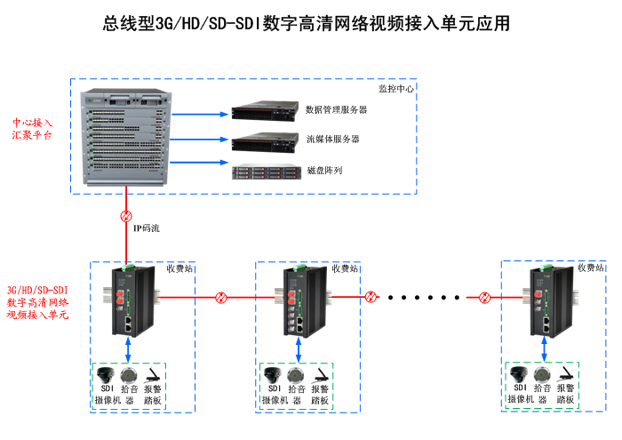 1/2/3/4路3G/HD/SD-SDI數字高清網絡視頻交通信息總線級聯型接入單元,2光2電百兆/千兆以太網接口,多路RS-232/485/422/IO開關量可選,1路雙向音頻可選,單模/多模/塑料,1/2纖,獨立/冗余供電,壁掛,高可靠型 |