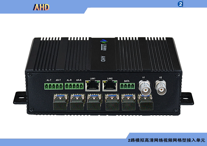 配置 2路AHD模擬高清網絡視頻交通信息網格型接入單元,2/4/6/8光2電百兆/千兆以太網接口,多路RS-232/485/422/IO開關量可選,1路雙向音頻可選,單模/多模/塑料,1/2纖,ST/FC/SC/LC/SFP光接口,15/20/25/32dB,獨立/冗余供電,壁掛,通用型