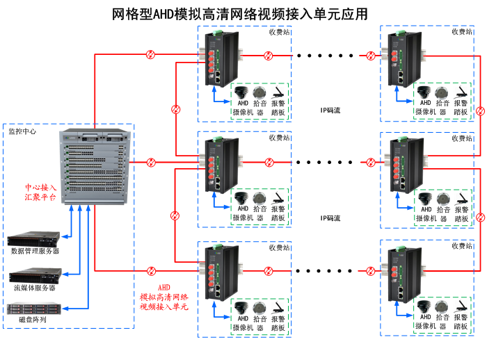 AHD模擬高清網絡視頻交通信息網格型接入單元已經廣泛應用在城市道路交通、交通卡口及崗亭、停車場、高速公路交通收費站、高速公路交通和收費站及服務區、橋梁隧道、城市管理公交BRT及公用設施站臺、海島港灣碼頭、大壩及河道水利、山林公園、產業園及開發區、鄉鎮村莊及住宅小區、政府企事單位、廠礦企業商戶、校園、高鐵及地鐵軌道交通、風景區、燃煤氣自來水及污水處理、能源發電和輸配變電網等等的道路交通監控、電子警察、流量檢測、交通事件報警及記錄、車輛及圖像識別、信號燈及燈光控制、收費系統、交通設備設施控制、交通信息誘導屏發布、大屏顯示及廣告等各種交通系統中。