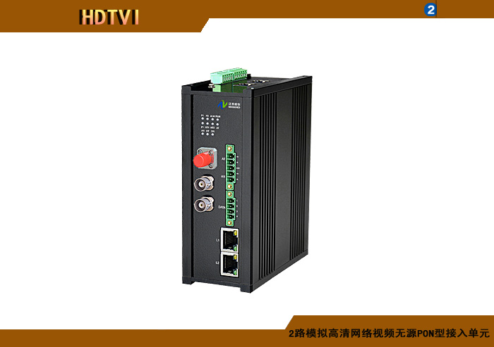 2路HDTVI模擬高清網絡視頻交通信息無源PON型接入單元,1光2電百兆/千兆以太網接口,多路RS-232/485/422/IO開關量可選,1路雙向音頻可選,單模/多模/塑料,1/2纖,ST/FC/SC/LC/SFP光接口,15/20/25/32dB,獨立/冗余/總線供電(DC18~36V/5V),導軌,工業型,非網管/網管/帶光纖數字診斷網管 |