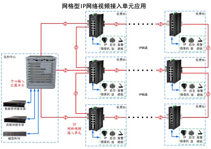 IP高標清網絡視頻交通信息網格型接入單元可提多路可選供報警控制開關量、RS-485/422/232控制數據,方便交通現場的信號燈控制統、交通誘導發布、情報板、流量檢測、雷達測速器、交通事件檢測器、車輛檢測識別器、路面狀態檢測器、可變限速器、可變信息標志、氣象檢測器、環境氣體檢測器、氮氧化物和一氧化碳檢測器、能見度檢測器、光強檢測器、隧道風機、橫洞閘門、車道指示、照明控制、消防及報警系統、音頻廣播系統、對講系統、電話語音系統等等與設備等等與中心相關的記錄、控制與事件服務器及各種聯動系統相通信。