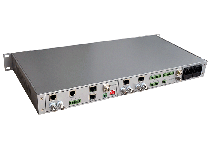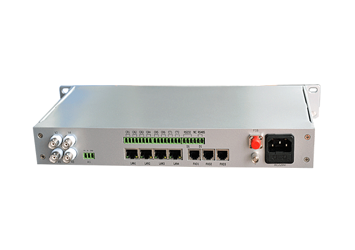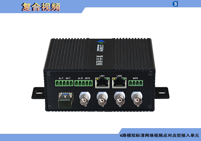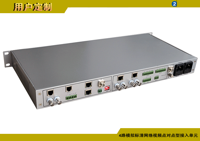 4路模擬標清網絡視頻交通信息點對點型接入單元,1光2電百兆/千兆以太網接口,多路RS-232/485/422/IO開關量可選,1路雙向音頻可選,單模/多模/塑料,獨立供電,機架,通用型 |