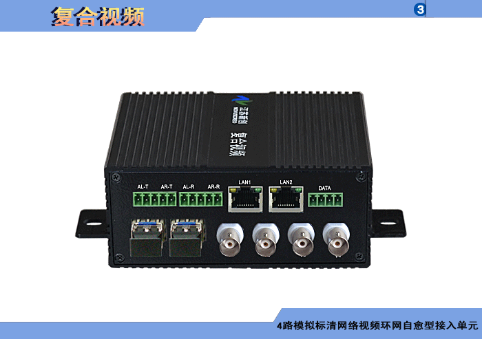 1/2/3/4路模擬標清網絡視頻交通信息環網自愈型接入單元,2光2電百兆/千兆以太網接口,多路RS-232/485/422/IO開關量可選,1路雙向音頻可選,單模/多模/塑料,1/2纖,獨立/冗余供電,壁掛,高可靠型 |