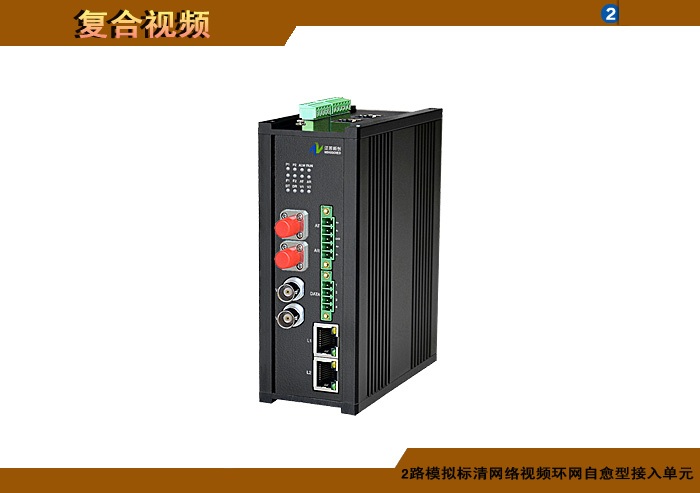 2路模擬標清網絡視頻交通信息環網自愈型接入單元,2光2電百兆/千兆以太網接口,多路RS-232/485/422/IO開關量可選,1路雙向音頻可選,單模/多模/塑料,1/2纖,ST/FC/SC/LC/SFP光接口,15/20/25/32dB,獨立/冗余供電,壁掛,通用型 |