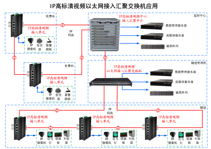 工業以太網接入匯聚交換機是江蘇新創自主研發創新,專門為大容量IP高標清網絡視頻IP碼流通過單模、多模光纖或電纜接入匯聚到交通信息視頻監控存儲系統或管理平臺而設計。采用以太網接入、匯聚和核心交換路由管理技術,采用多層以太網核心交換技術,單機大可支持高達10000路IP高標清網路視頻、多路控制數據流接入匯聚和視頻交換組播服務。提供單機120G總容量。單機支持大48個百兆/千兆以太網SFP光電接口,4個萬兆SFP+光電口,支持高達768個端口的單IP地址堆疊管理能力。接入匯聚交換機的光電接口與前端以太網接入單元可構成多個網格型、環網及多環相切形、T形、總線、星型匯聚等自愈備份或冗余備份光纖等各種復雜的高可靠傳輸網絡。采用高速實時工業以太網保護及交換協議,支持工業以太網1+1端口保護、1:1端口保護、1:N端口保護,支持30ms的快速自愈環網及冗余保護恢復時間。多個平臺機架夠堆疊。任意光電口都可組合支持TRUNK及聚合功能,提供通信容量。多個接入匯聚交換機可通過光纖連成帶寬高達20G/40G的點對點冗余備份、點對多點星型、自愈環網、多點對多點網格型、T型、總線型等各種網絡拓撲,構建和延伸高可靠、大地理范圍、分布式扁平化和網格化的IP視頻監控及數據通信網絡。