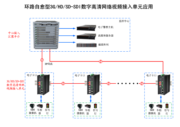 1/2/3/4路3G/HD-SDI數字高清網絡視頻交通信息環網自愈型接入單元,2光2電百兆/千兆以太網接口,多路RS-232/485/422/IO開關量可選,1路雙向音頻可選,單模/多模/塑料,1/2纖,獨立/冗余供電,壁掛,高可靠型 |