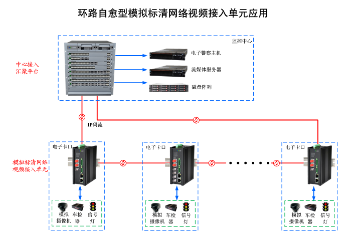 1/2/3/4路模擬標清網絡視頻交通信息環網自愈型接入單元,2光2電百兆/千兆以太網接口,多路RS-232/485/422/IO開關量可選,1路雙向音頻可選,單模/多模/塑料,1/2纖,獨立/冗余供電,壁掛,高可靠型 |