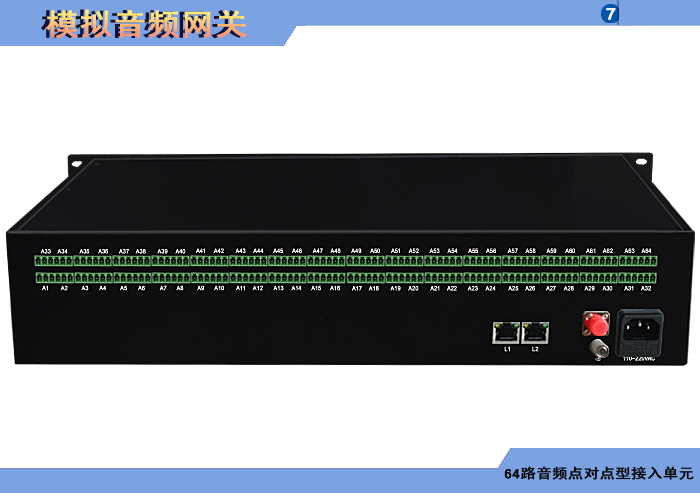 64路模擬音頻網(wǎng)關(guān)點(diǎn)對(duì)點(diǎn)型接入單元,1光2電百兆/千兆以太網(wǎng)接口,多路控制數(shù)據(jù)/報(bào)警開關(guān)量可選,單模/多模/塑料,1/2纖,ST/FC/SC/LC/SFP光接口,15/20/25/32dB,獨(dú)立/冗余供電,2U機(jī)架,通用型 |
