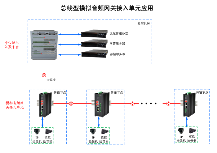 4/8/16/24/32/48/64路模擬音頻網關總線級聯型接入單元,2光2電百兆/千兆以太網接口,多路控制數據/報警開關量可選,單模/多模/塑料,1/2纖,獨立/冗余供電,壁掛,防水型 |