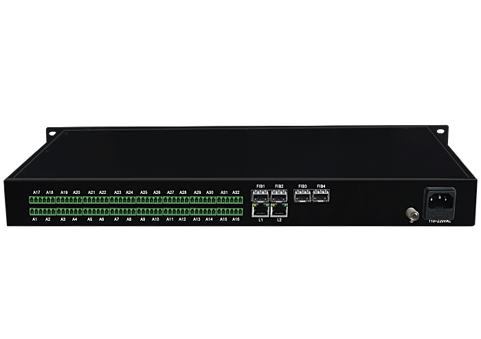 32路模擬音頻網關網格型接入單元,2/4/6/8光2電百兆/千兆以太網接口,多路控制數據/報警開關量可選,單模/多模/塑料,1/2纖,ST/FC/SC/LC/SFP光接口,15/20/25/32dB,獨立/冗余供電,1U機架,通用型 |