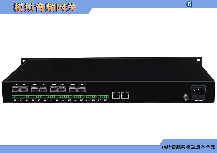 16路模擬音頻網關網格型接入單元,2/4/6/8光2電百兆/千兆以太網接口,多路控制數據/報警開關量可選,單模/多模/塑料,1/2纖,ST/FC/SC/LC/SFP光接口,15/20/25/32dB,獨立/冗余供電,1U機架,通用型 |